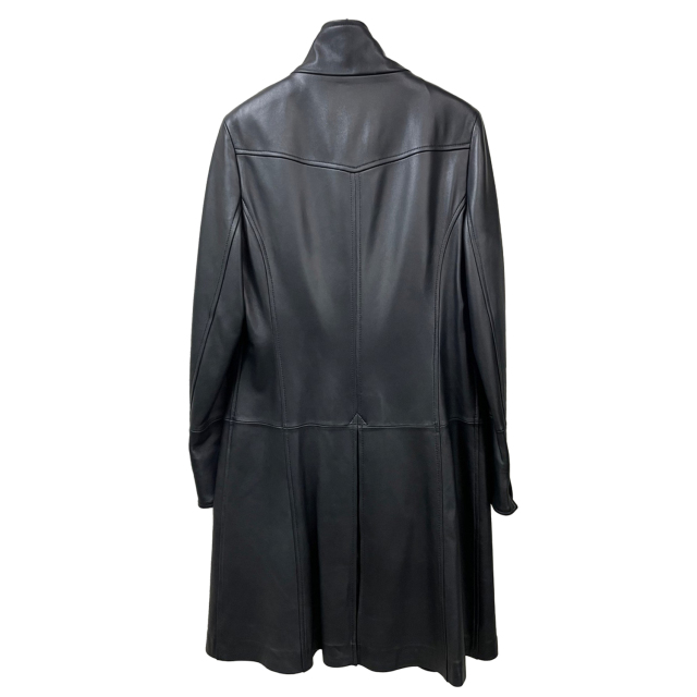 | コメント | 大人な女性を感じさせるレザーコート 軽くて柔らかいラム革を使用しているから馴染みやすく着心地も良いコートです。 前立てはフラップ付きのジッパー仕様で防風性アップ! 首元にはおしゃれな金具がついています。 手首は折り曲げられるようになっており、少しカジュアルな着こなしも楽しめます。 ラインが美しく出かけるのが楽しくなる一着です。 |