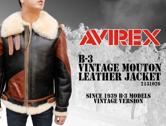 アメリカ陸軍航空隊の冬季ジャケットとして名高いAVIREX B-3ムートンジャケット1939年頃のモデルをベースにしたヴィンテージ仕様のB-3ジャケットです。インナーにはスペイン産の上質なシープスキンを使っているので体から放つ体温をキープしてくれます。惜しげもなくふんだんに使用されたシープスキンは着心地を考慮しパーツごとに毛足の長さを調整しています。フロントジップは四つ組式のタロンタイプジッパーを使用しています。表面には上質なカウハイドを使用しているのでゆったり目なコーディネートとしても着回しいいムートンジャケットです。少し長めの着丈仕上げになっています。