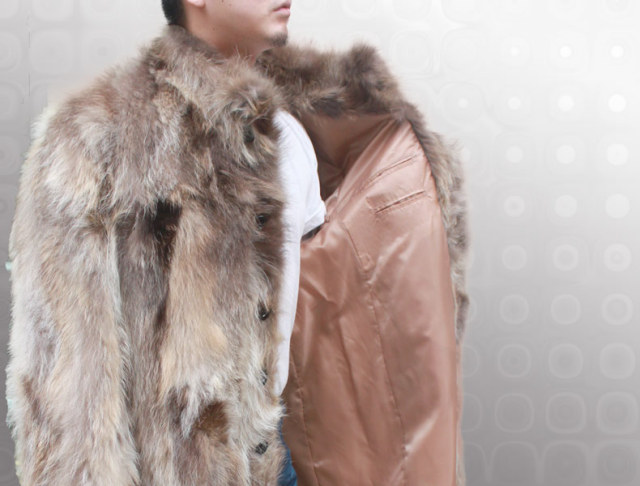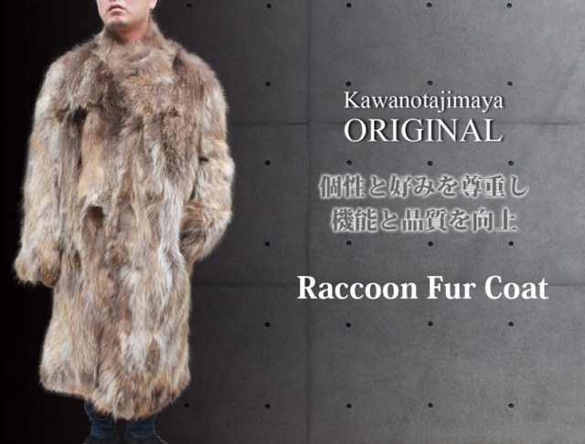 皮の但馬屋オリジナルメンズラクーンファーコート。