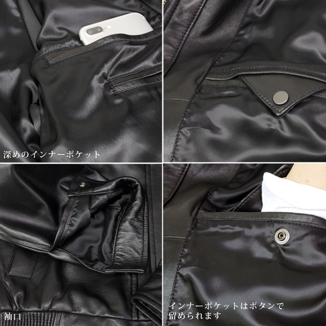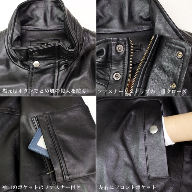 | 商品説明 | 軽く柔らかいラムスキンなのでで着心地は最高 確かな素材・しっかりとした縫製 フロントはファスナーとスナップの二重クローズ ジッパーを首元まであげればスタンドカラーへ。 左袖には多機能ポケットがついています。 スッキリとしたデザインにより幅広い年齢層におすすめです。 ※今季の本製品はスナップボタンの色が黒系に変更しております。 |