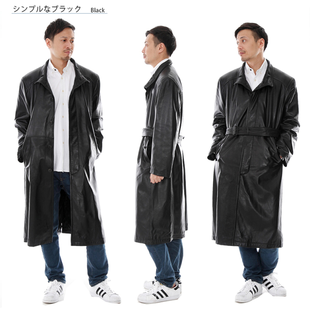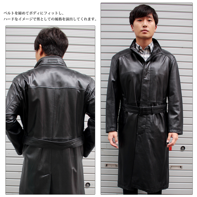 レザーロングコートメンズスタンドカラーレザーロングコート6523当店オススメ!メンズレザーロングコート。のレザーロングコートなので、縫製、素材、デザイン共に高いクオリティを誇ります。こだわりのラムレザーなので、しなやかに、美しい光沢であなたを包み込みます。首元までしっかり守るので、寒い通勤時、外回りでも安心して暖かく着用できます!こちらのレザーロングコートは、ベルトを締めてボディにフィットさせたり、ベルトを外してオープンにモノトーンスーツと合わせてシックな印象にも!あなたなりの着こなしでレザーロングコートを楽しんでみてください!人気レザーロングコート、最終価格でご提供です!サイズ表M:着丈115cm肩幅:50cm袖丈:60cm胸囲:126cmL:着丈115cm肩幅:52cm袖丈:61cm胸囲:130cm2L:着丈115cm肩幅:53cm袖丈:62cm胸囲:134cm3L:着丈116cm肩幅:54cm袖丈:63cm胸囲:138cm色ブラック素材ラム素材メンズスタンドカラーロングコートスタイリッシュに着こなし、ハードなイメージのロング丈のコート。メンズコーナーの只今、大ヒット商品です。メンズスタンドカラーロングコートのスタンドカラーがお洒落。こだわりレザースタイル。最高級のラム素材を使用しているので手触り抜群。ベルトを締めてボディにフィット。ハードなイメージで男としての風格を演出。また、ベルトを外してオープンにし、モノトーンのスーツと合わせてシックな雰囲気にも。