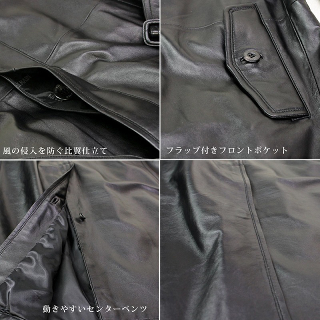 | 商品説明 | 縫製、素材、デザイン共に高いクオリティを誇ります。 こだわりのラムレザーなので、しなやかに、美しい光沢であなたを包み込みます。 首元までしっかり守るので、寒い通勤時、外回りでも安心して暖かく着用できます。 メンズ・レザーアウターコーナーの中でもイチオシの商品です。 こだわり抜いたレザースタイルを作りたい方にぴったりの商品です。 最高級のラム素材を使用しているので手触り抜群。 ベルトを締めてボディにフィットし、ハードなイメージで男としての風格を演出してくれます。 また、ベルトを外してオープンにし、モノトーンのスーツと合わせてシックな雰囲気にも表現してくれます。 |