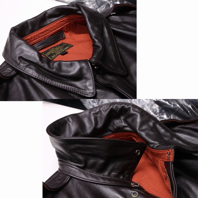 当時のパイロットに愛用され次々と軍へ納品された。 そして彼らとともに最前線の空へ駆け抜けた。 フライトジャケットの伝説は現在も生き続けている。 その防寒性・機能性など重視され、その精神を受け継いでいる有名フライトレザー 「AVIREX(アヴィレックス)」 |