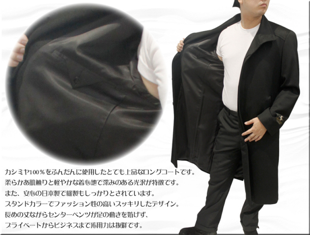 | 製品名: | [日本製] カシミヤ100% メンズ スタンドカラー ロング カシミヤコート 8216 |