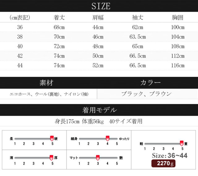 36:着丈68cm 肩幅44cm 袖丈62cm 胸囲100cm