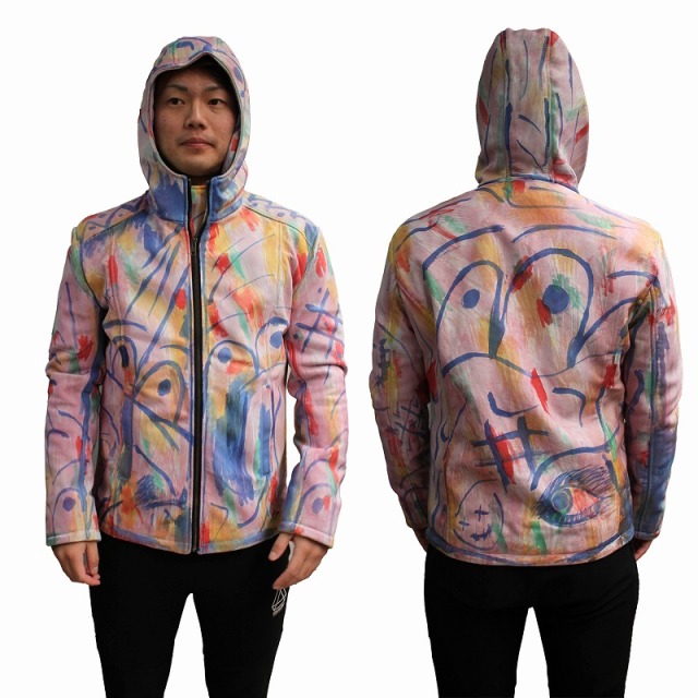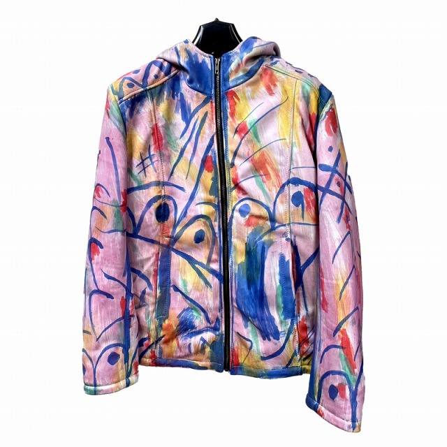 ラム革を使用したフード付きのレザージャケット 街中で視線を集めそうな派手なデザインが特徴的ですが、洋服のスタイル自体はシンプルなデザインで、ふわっとした感覚の素材で軽くて着やすい一着です。 ※在庫切れのサイズは受注生産となりますので、時期にもよりますが1〜2か月ほどかかります。