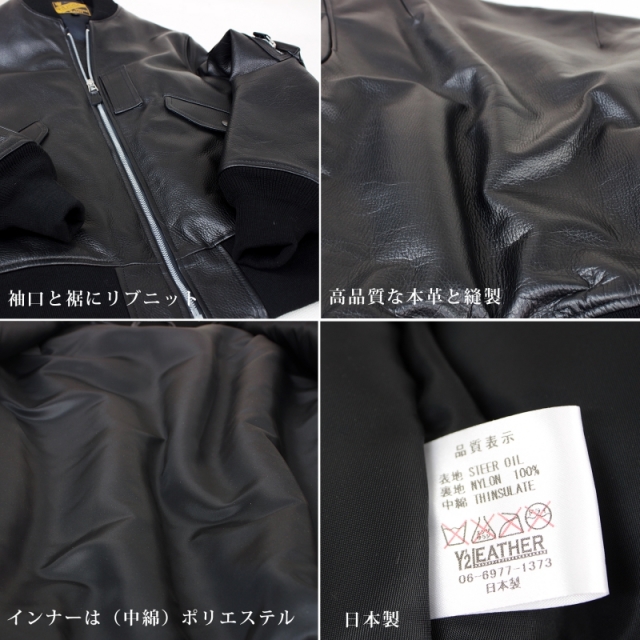 | コメント | 上質なステアオイルを使用したMA-1ジャケット 日本製 (厚みに対して驚くほどの柔らかさで日本発信の革) インナーは(中綿)ポリエステル綿の20倍の空気を含むシンサレートを使用しているので保温性も抜群‼ 袖口、裾のリブニットも日本製仕立てになっています。 左腕には、MA-1の特徴であるシガレットペンホルダーポケットにもジャンパードットで中身が落ちない工夫になっています。 日本製で丁寧に作られたMA-1フライトジャケット。 |