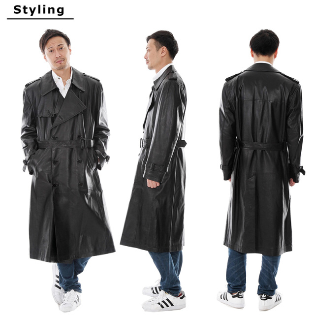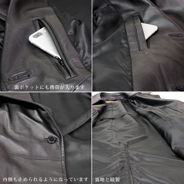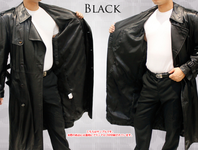 ラム革 トレンチコート メンズ ブラック/ブラウン/キャメル...
