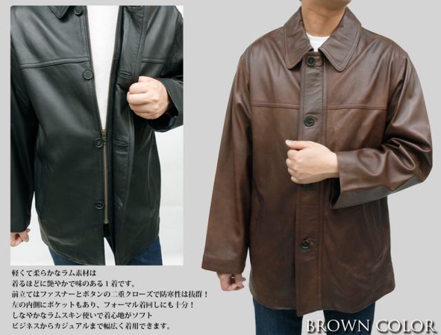 ラム革 スタンドカラーコート メンズ ブラック/ブラウン/キ...