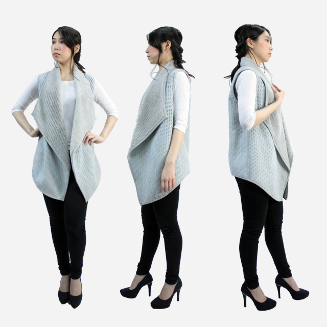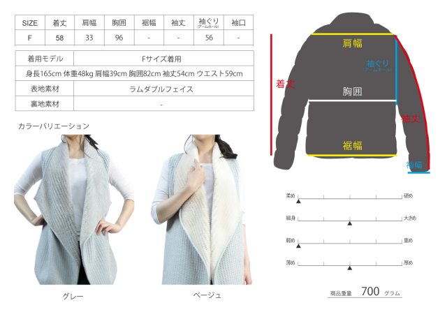ラム革 ダブルフェイス パンチング加工 カーディガンベスト レディース グレー/ベージュ フリーサイズ 1961
