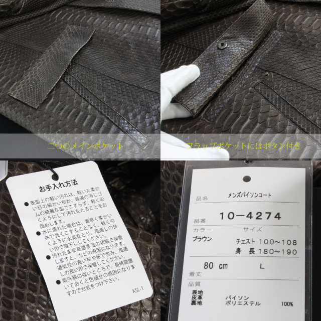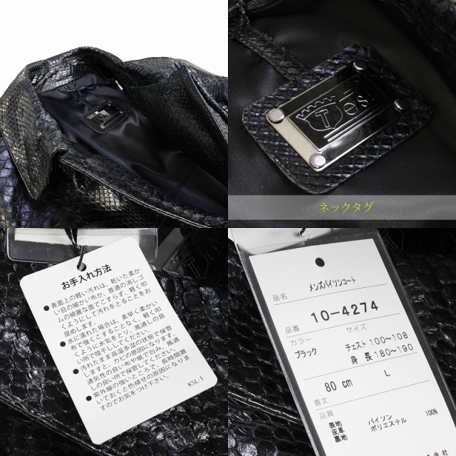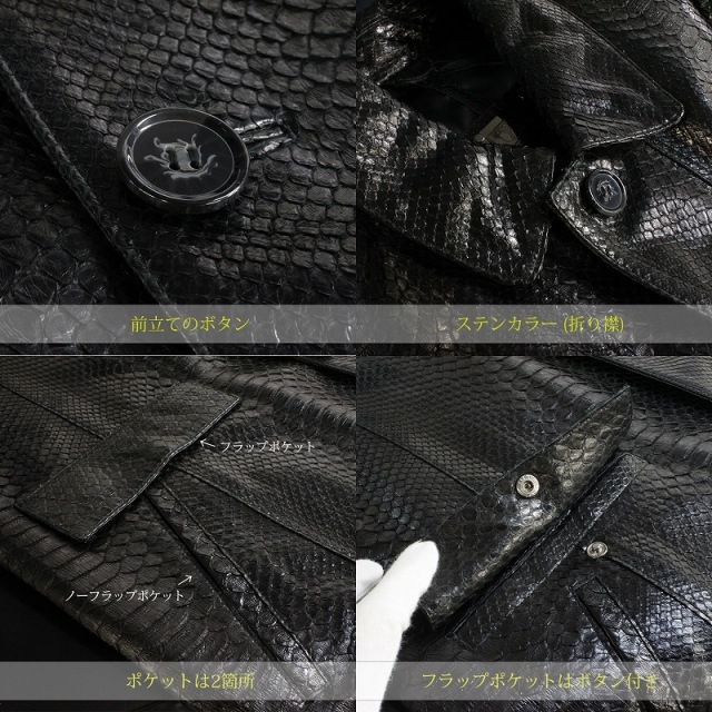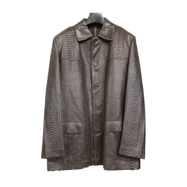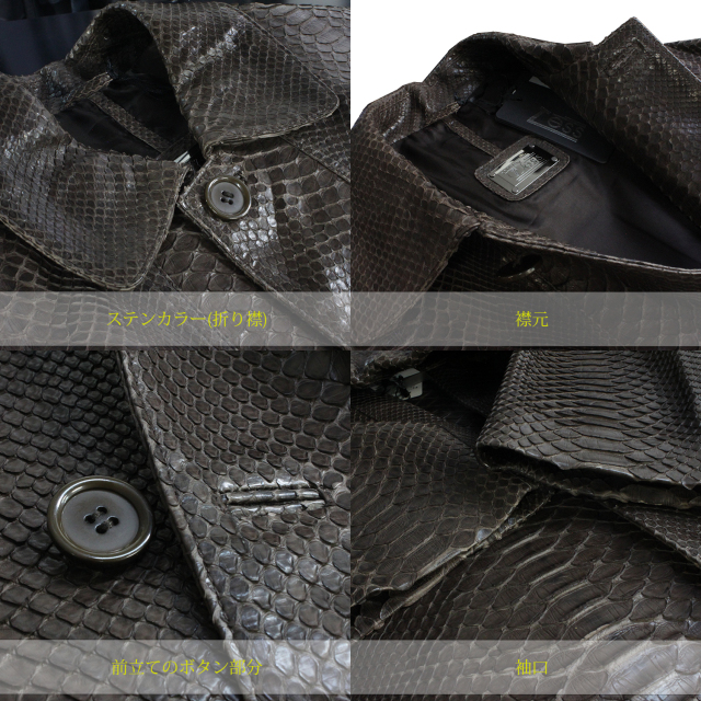 パイソン メンズ ステンカラーコート ステンカラージャケット 蛇革 本革 4274