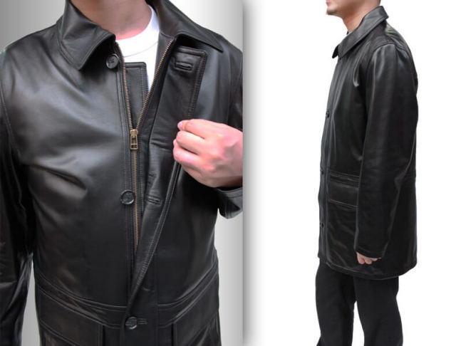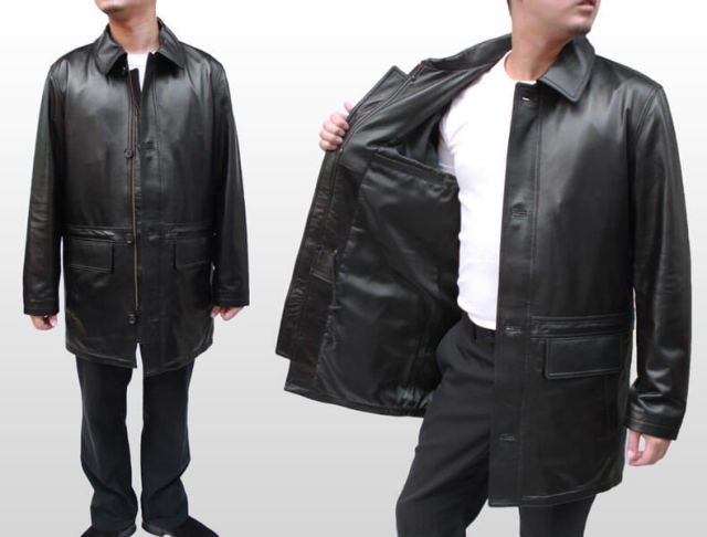 ラム革 ステンカラーコート メンズ ブラック S/M/L/LL/3L/4L/5L/ 6085