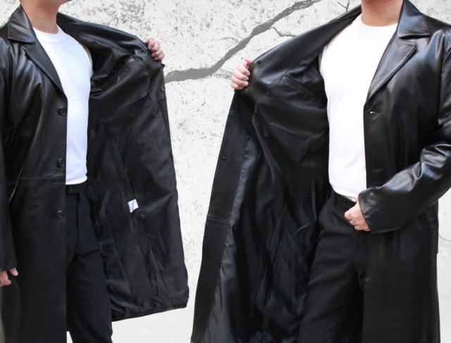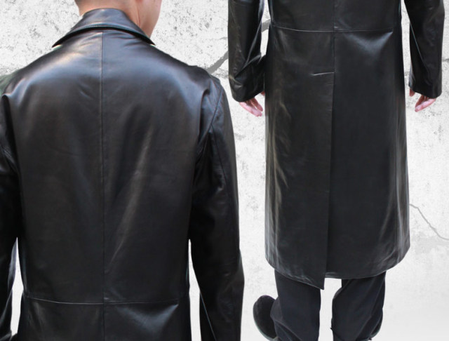 有名ブランド ラム革 ステンカラーコート メンズ ブラック/...