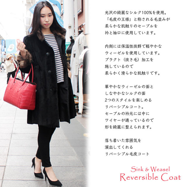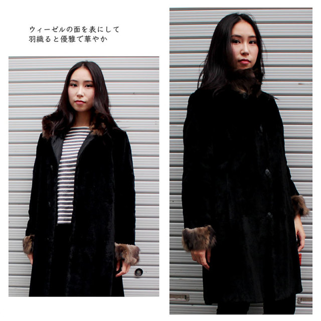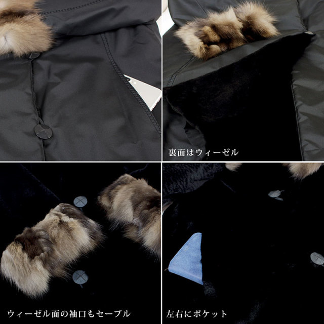 • ウィーゼル セーブル シルク スタンドカラーコート レディース ブラック フリーサイズ 7357