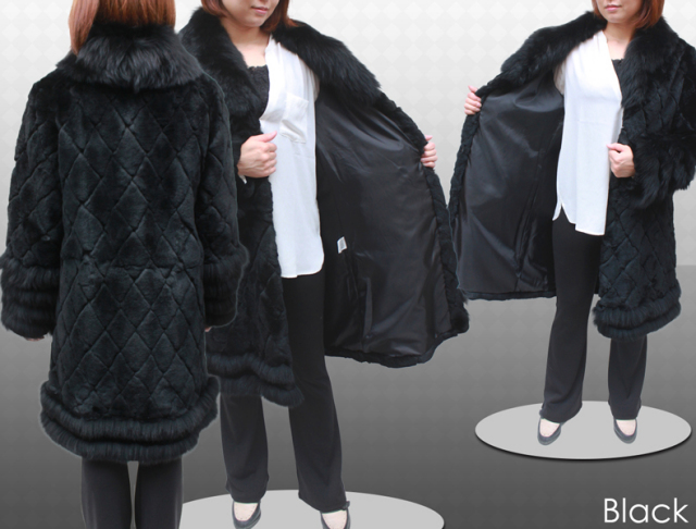レッキス フォックス 毛皮コート レディース ブラック/レッド/ベージュ M/L 7384