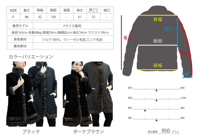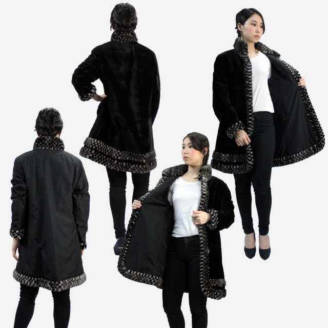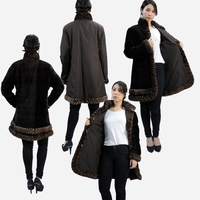 ウィーゼル ミンク スタンドカラーコート レディース ブラック/ブラウン フリーサイズ 7911
