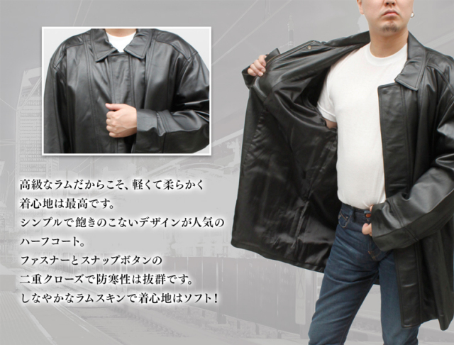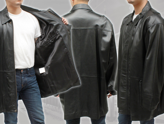 大きいサイズ ラム革 ステンカラーコート メンズ ブラック 3L/4L/ 515300