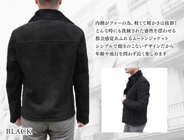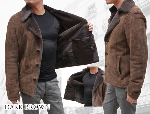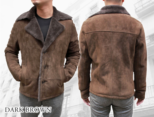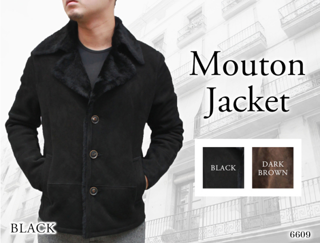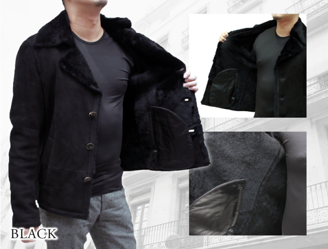 ムートンジャケット 3つボタン メンズ ブラック7/ブラウン M/L/LL/ 6609