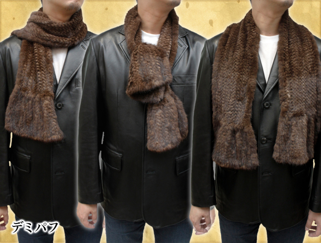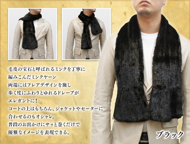 ミンクヤーン 毛皮マフラー メンズ フリーサイズ ブラック 0911