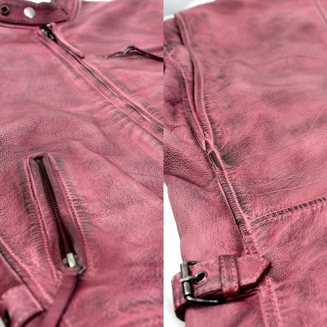 Mo-Laws 山羊革 メンズ シングルライダースジャケット ダメージカラー ブラウン/レッド S/M/L/LL/3L/ MLRJ009