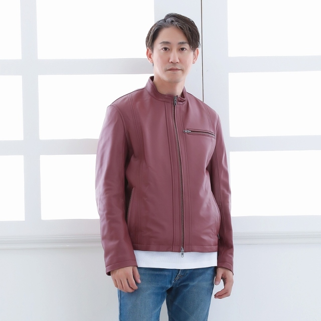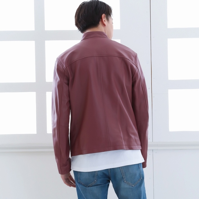 レザージャケット メンズ 本革 赤 レッド シングルライダー...