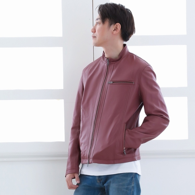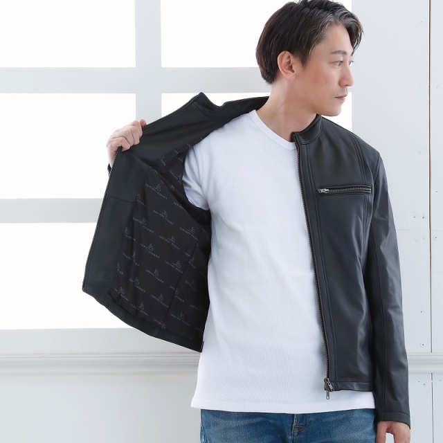 Mo-Laws ラム革 シングルライダースジャケット メンズ...